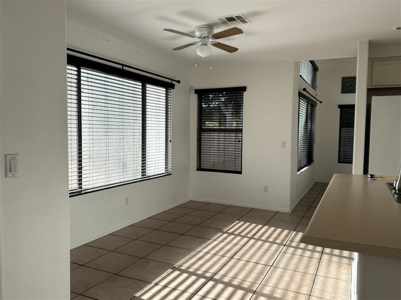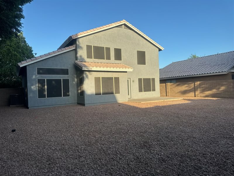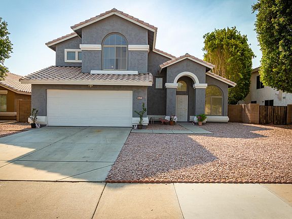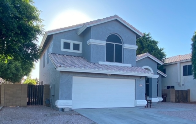 Beautiful 4 Bedroom/2.5 located in Peoria!! NO HOA! Open floor plan; ceiling fans throughout. Tile downstairs; carpet upstairs. Gas Water Heater, huge backyard with low maintenance in both front and back yards. The main level has a 1/2 bath downstairs; family room off of the kitchen. The kitchen features an island, breakfast bar, pantry and cabinets. Upstairs has a huge master bedroom; vaulted ceilings, dual sinks, separate shower/tub, private toilet and walk-in closet. Built in/stained shelves in the garage. Sun Solar Shades throughout. Includes state of the art Refrigerator, Washer and Dryer. Great location right off of the 101 and Thunderbird! Includes Solar!!