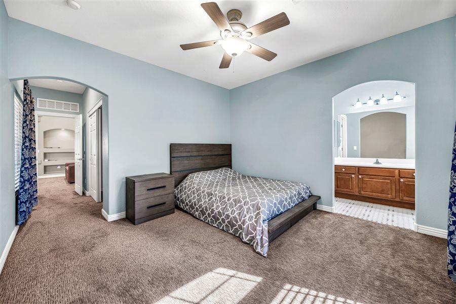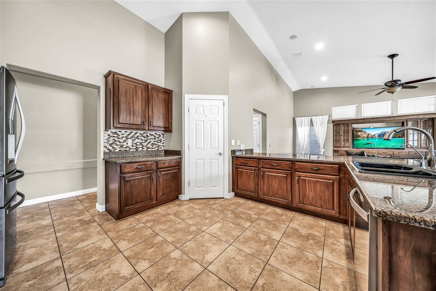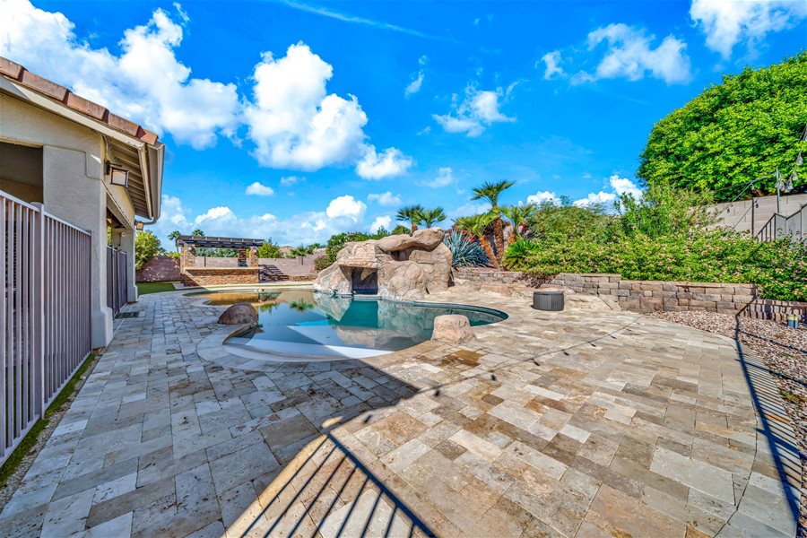 Stunning 3,749 sq ft single level home in the gated community of Dreaming Summit!! This home features a resort style backyard boasting a luxurious pool with a spa tucked behind a flowing grotto waterfall & a rock slide for the kids. Outdoor kitchen with high end smoker/grills under the Pergola, built-in seating area with natural gas fire pit & extensive landscape lighting to set the tone. 3 car garage, RV gate with extended driveway, basketball court with professional hoop, & volleyball court with professional setup! This beautiful furnished property includes LED lighting, Water softener, Solar & R.O. System! Interior features include a spacious kitchen with granite counters, tile backsplash & stainless appliances. Soaring vaulted ceilings throughout.