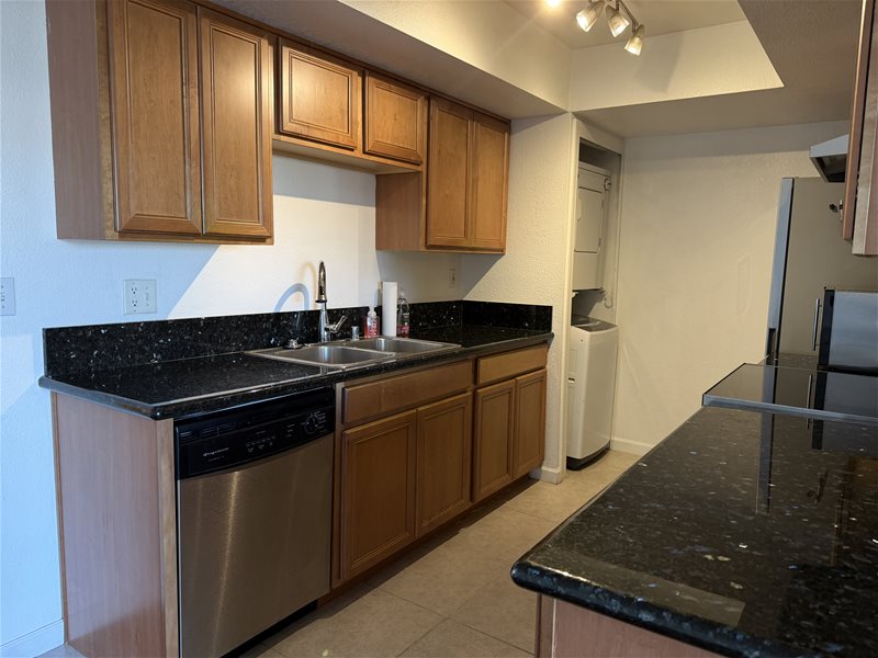 Beautiful 2 bed, 2 bath condo located near the sought-after Melrose District. This well-appointed unit features a galley kitchen with top-of-the-line stainless steel appliances, granite countertops, and accent/spot lighting. Wood flooring runs throughout the living room and kitchen. Includes ALL Appliances! Both bedrooms are generously sized, each with its own full bathroom. In-unit laundry included. The condo is conveniently situated near the front entrance and directly across from the fitness center. Community amenities include a gated entry and resort-style pool. Water, sewer, and trash are included. Prime location close to shopping, downtown, freeways, rail system, and more. 1 Covered parking spot.
