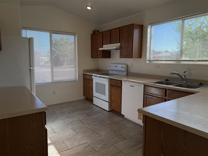 WELCOME HOME! This corner lot home has everything youre looking for. The home boasts upgraded carpet and pad, bay windows in the master bedroom and breakfast nook, vaulted ceilings, 6-panel doors, and a security system. Featuring 3 bedrooms, 2 bathrooms, and 1,516 square feet, this home offers a spacious great room, ceiling fans, and a breakfast bar. The primary suite includes a walk-in closet, double sinks, a separate jetted tub and shower, and private access to the backyard. Enjoy outdoor living with a covered patio and drip irrigation system. Landscaping is being done-additiona rock and turf off the patio will be installed. Close to shopping and freeway.